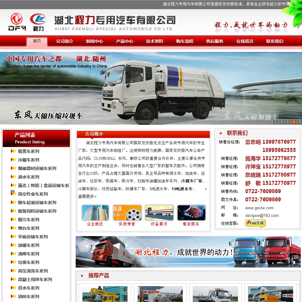 項目簡介:湖北程力專用汽車有限公司 國家發(fā)改委定點生產(chǎn)各類專用汽車的專業(yè)廠家,大型專用汽車制造廠,國內(nèi)知名園林綠化、石油化工、市政環(huán)衛(wèi)專用汽車制造商,冷藏車廠家,炸藥運(yùn)輸車,防爆車廠家,5噸灑水車,10噸灑水車。注冊商標(biāo)“程力威”牌,國家產(chǎn)品代碼:“CLW”東風(fēng)、解放公司的重要合作伙伴,主要從事各類專用汽車的生產(chǎn)制造業(yè)務(wù),同時也銷售各大型廠家的整車及配件。公司擁有自行出口權(quán),產(chǎn)品占據(jù)大量國外市場,其主導(dǎo)品種有灑水車系列、吸糞(吸污)車系列、垃圾車系列、掃地車系列、油罐加油車系列、高空作業(yè)車系列、隨車吊系列、自卸車系列、教練車系列、半掛車系列、消防車系列、廂式(冷藏)車系列、牽引車系列、化工車系列、粉粒物料車系列、水泥攪拌車系列、清障車系列、壓力容器系列等十八大系列300多個品種車型。同時批發(fā)東風(fēng)、解放、楚風(fēng)各種二類底盤。